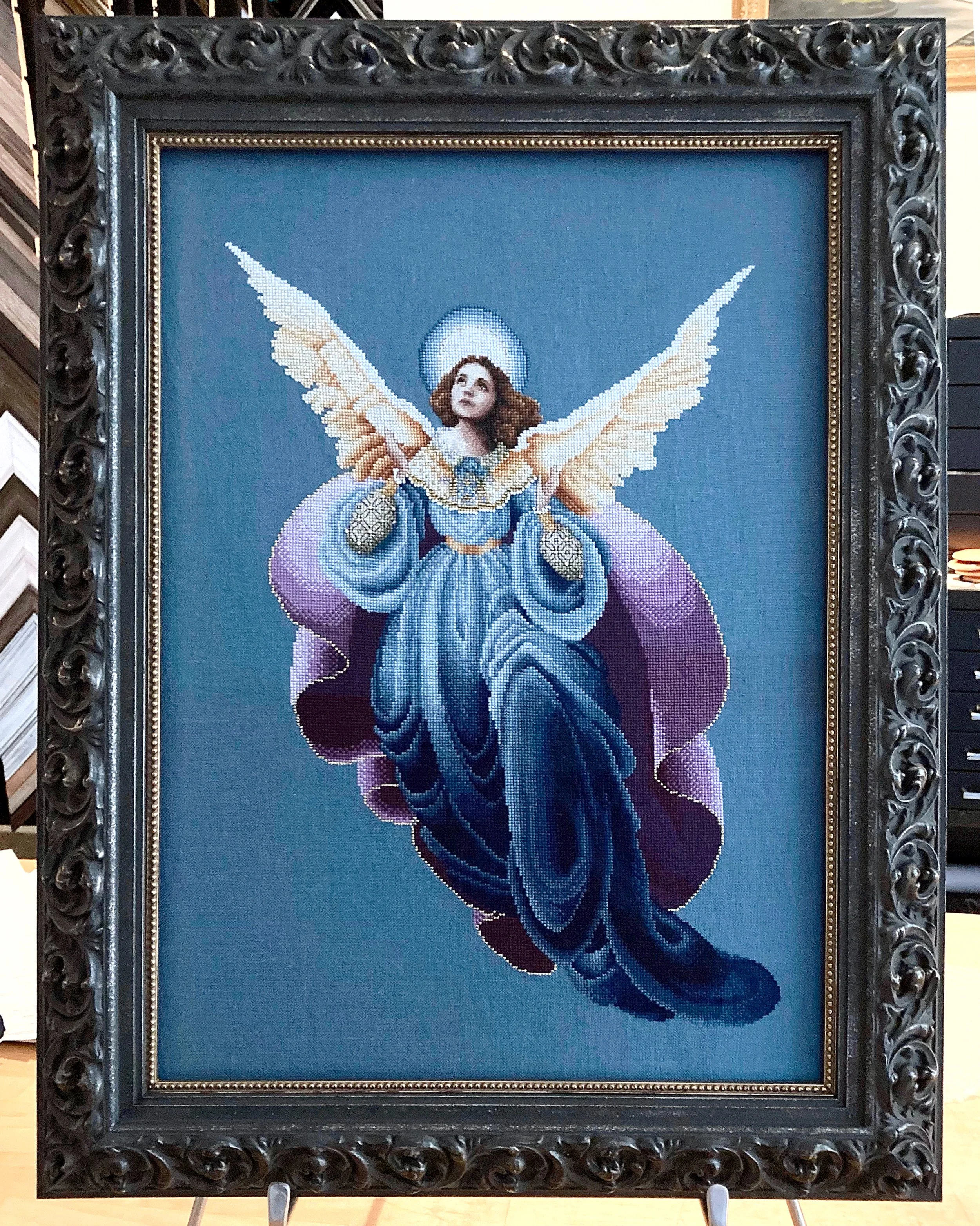 "A hundred thousand welcomes" is the English translation of this Gaelic salutation. This cross stitch was expertly mounted over an archival board and framed with a perfectly patterned moulding. These projects showcase the time, talent, and creativity of needle artists, and we are experts at helping our customers achieve their finished piece. I wonder how one might express "a hundred thousand stitches"?